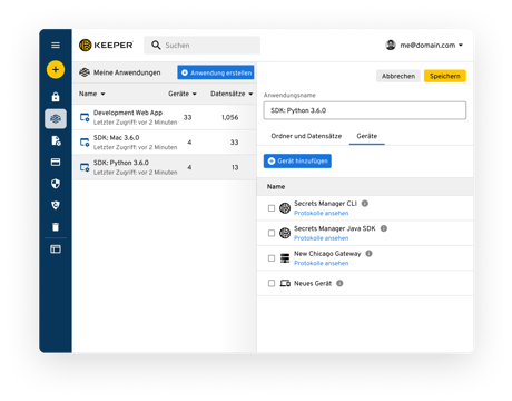 Keeper Secrets Manager (KSM) schützt die Infrastruktur Ihres Unternehmens über Zero-Trust- und Zero-Knowledge-Sicherheit. KSM verhindert die unerwünschte Weitergabe von Geheimnissen, indem es hartcodierte Zugangsdaten aus Quellcode, Konfigurationsdateien und CI/CD-Systemen entfernt. KSM automatisiert zudem die Rotation von Zugangsschlüsseln, Passwörtern und Zertifikaten.